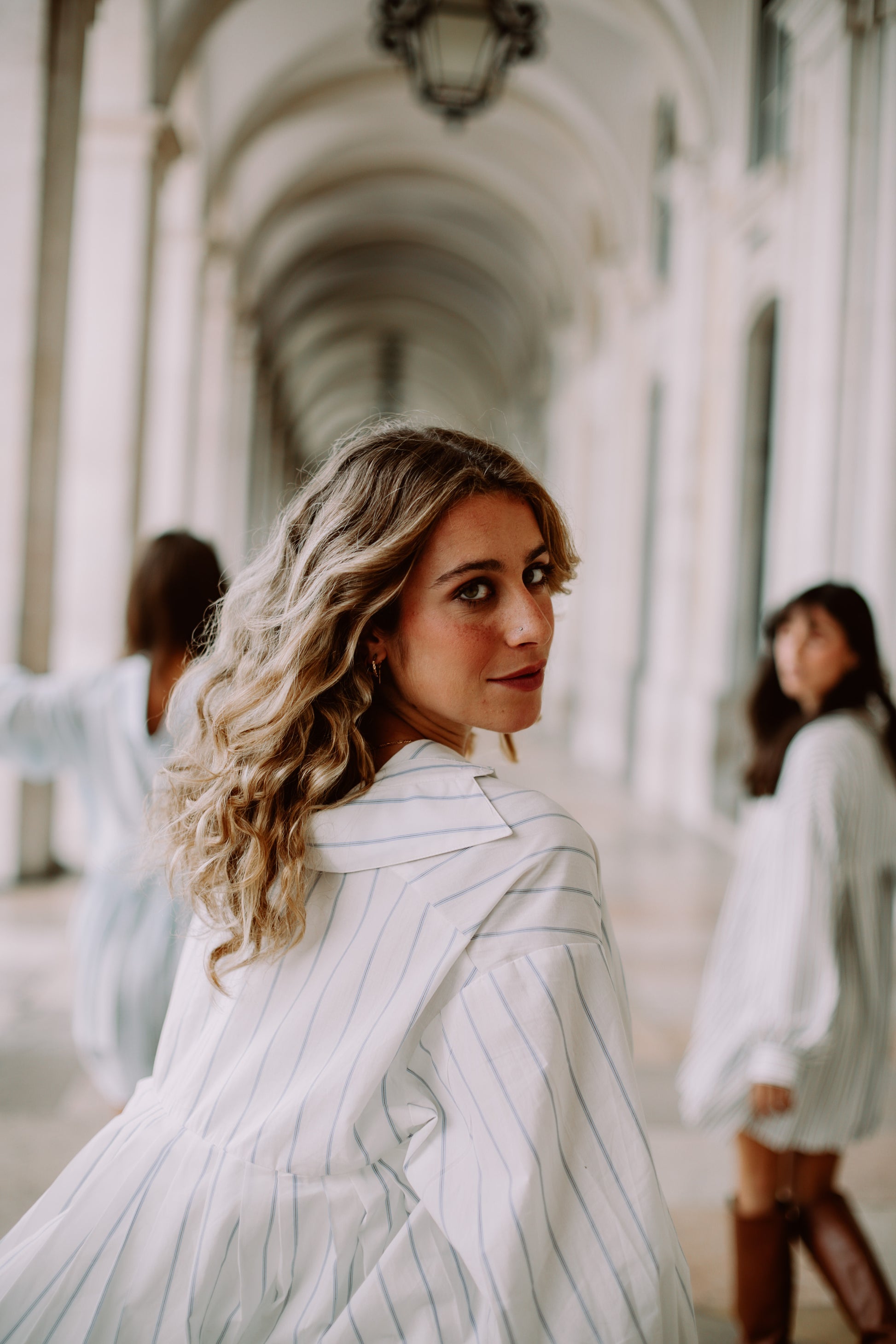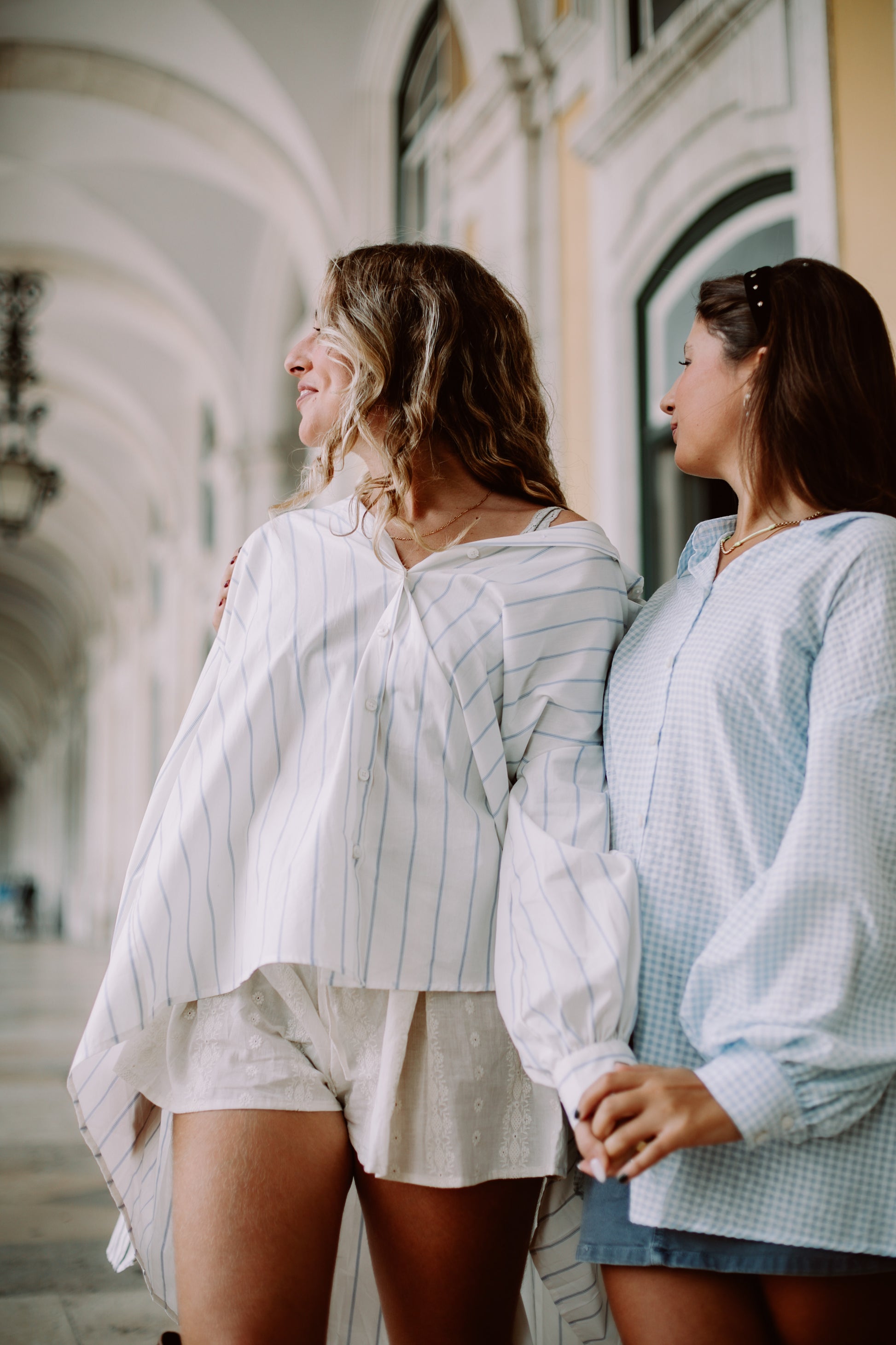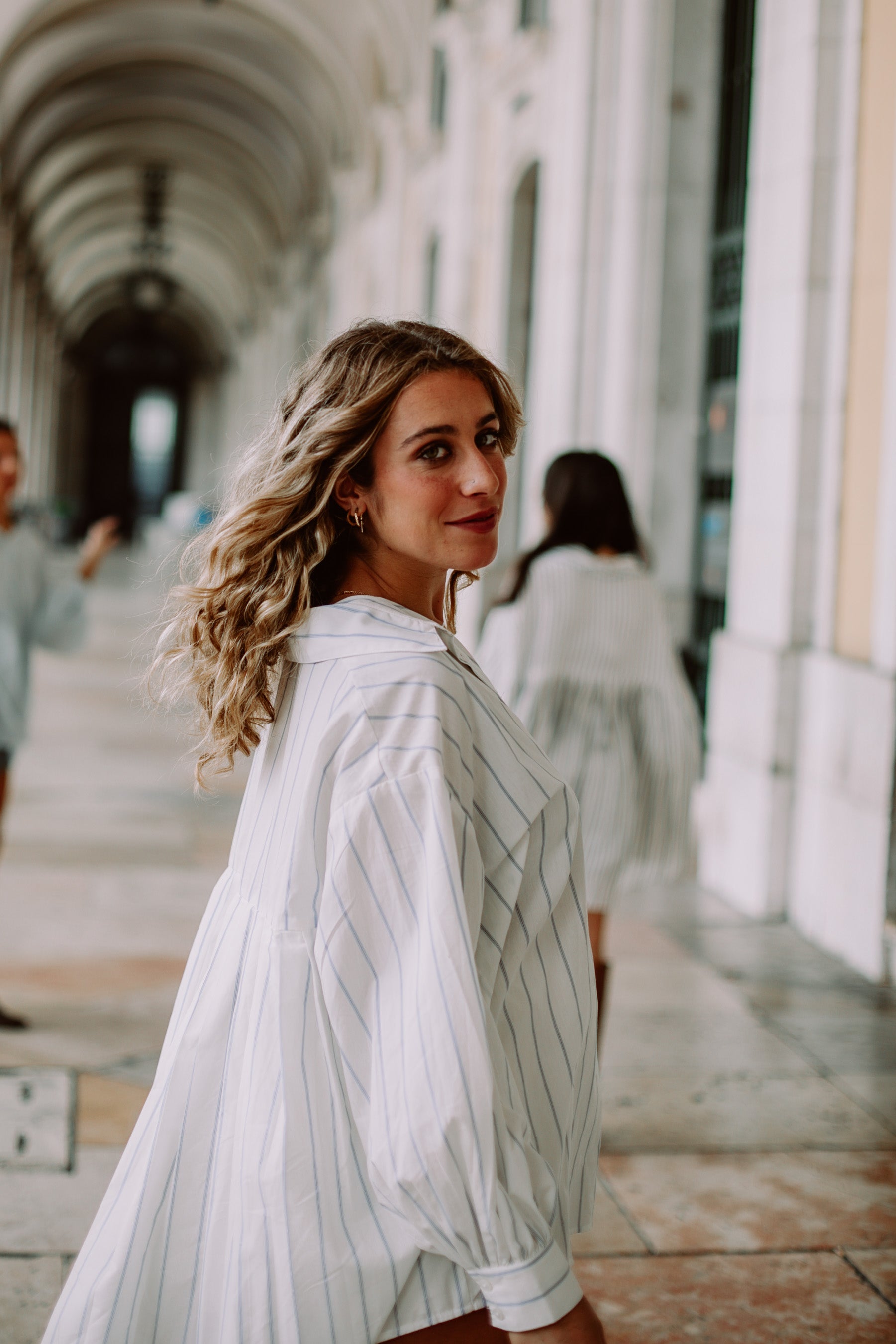 A camisa FILOMENA é uma camisa NO SIZE, INCLUSIVA. Ela veste sensivelmente do XS (32/34) até ao XXL (52/54).