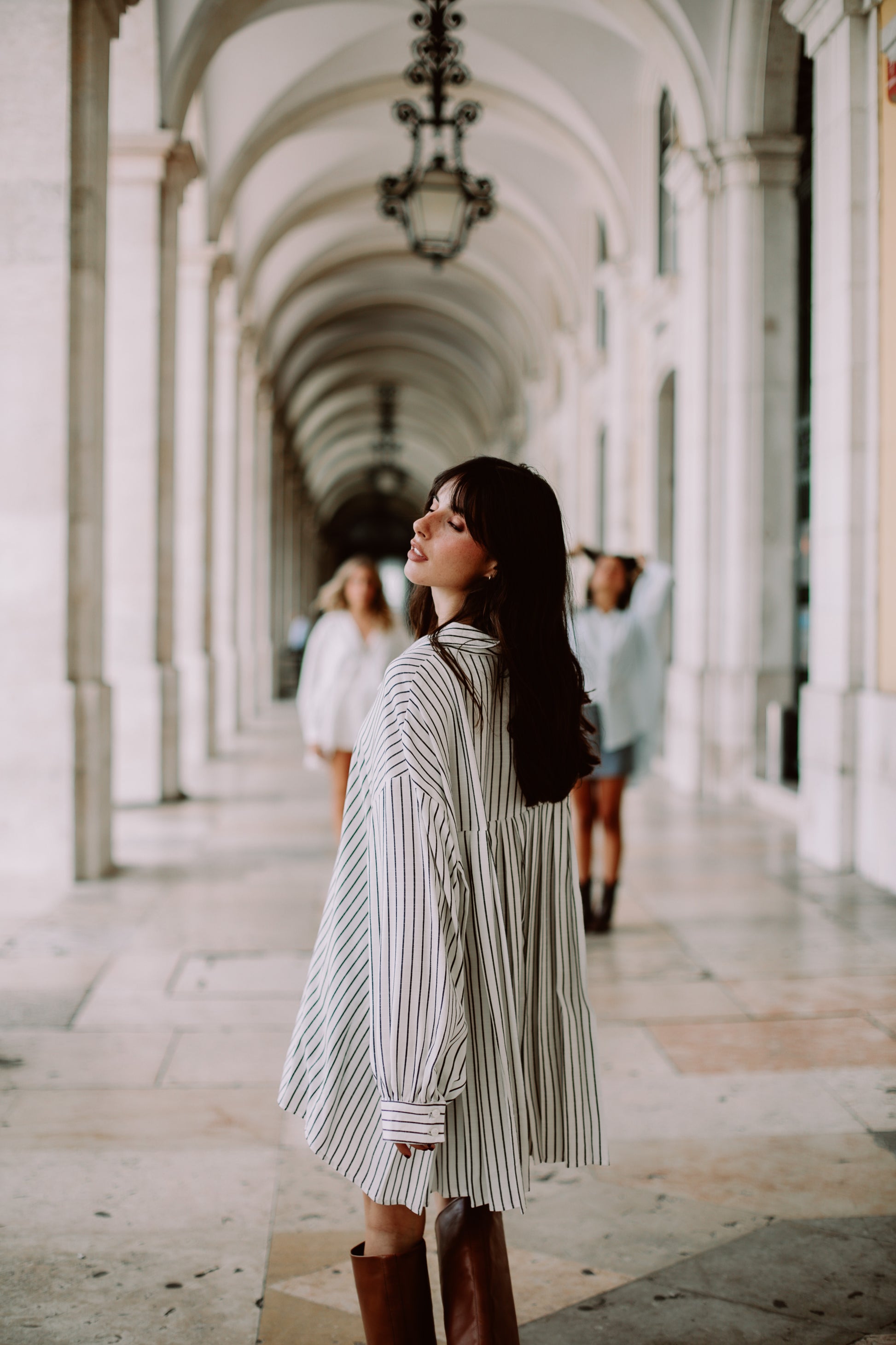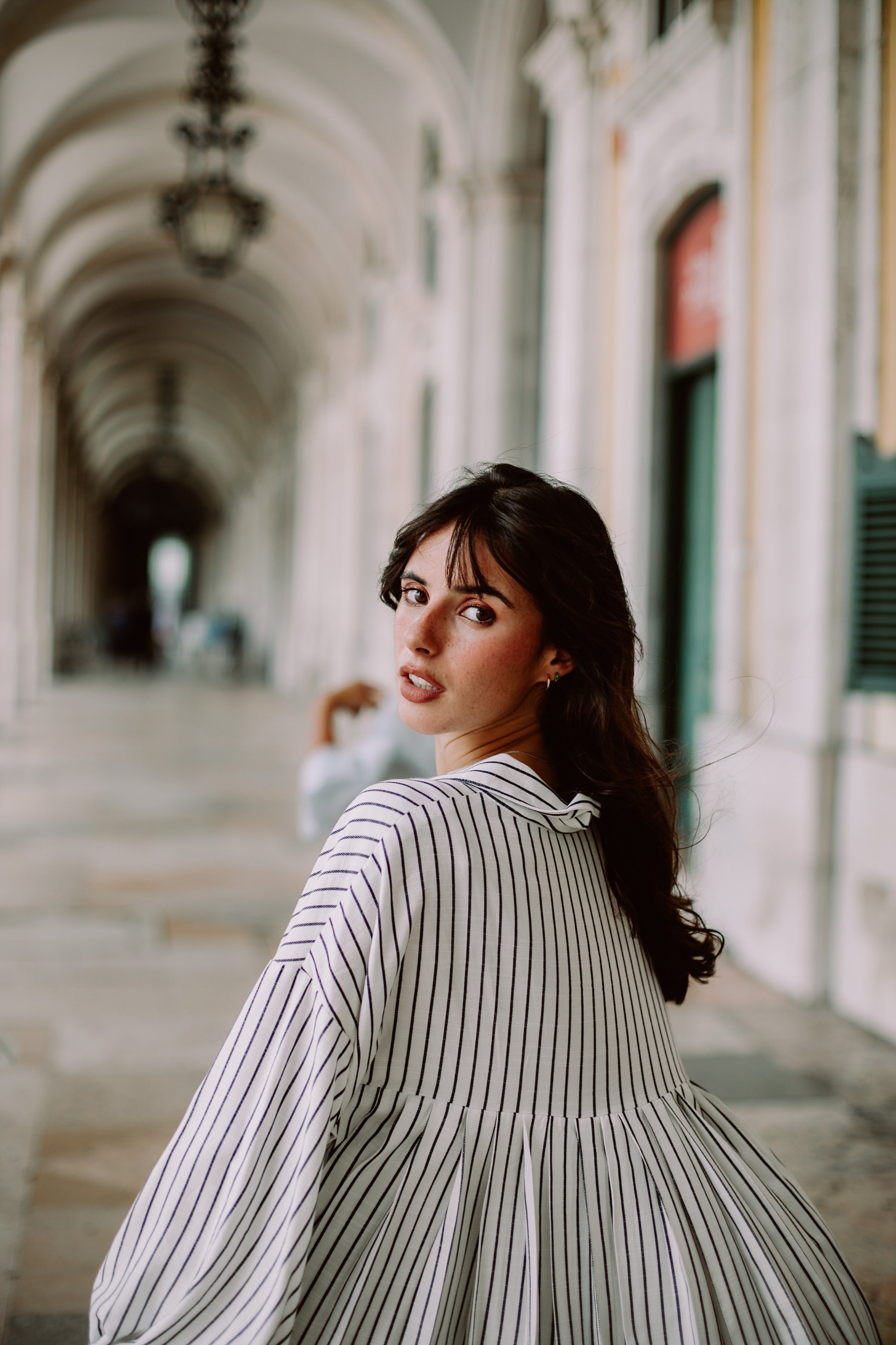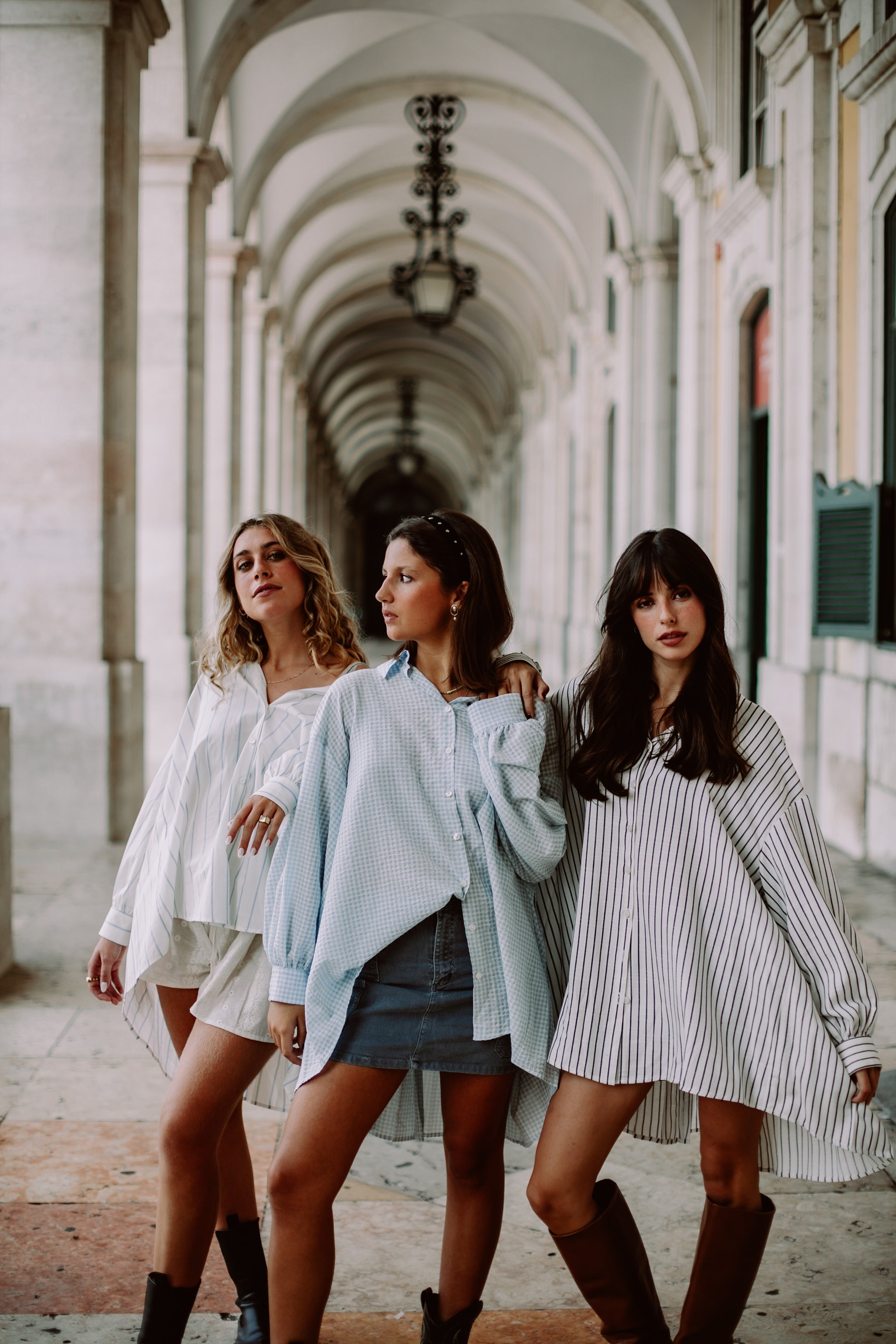 A camisa FILOMENA é uma camisa NO SIZE, INCLUSIVA. Ela veste sensivelmente do XS (32/34) até ao XXL (52/54).