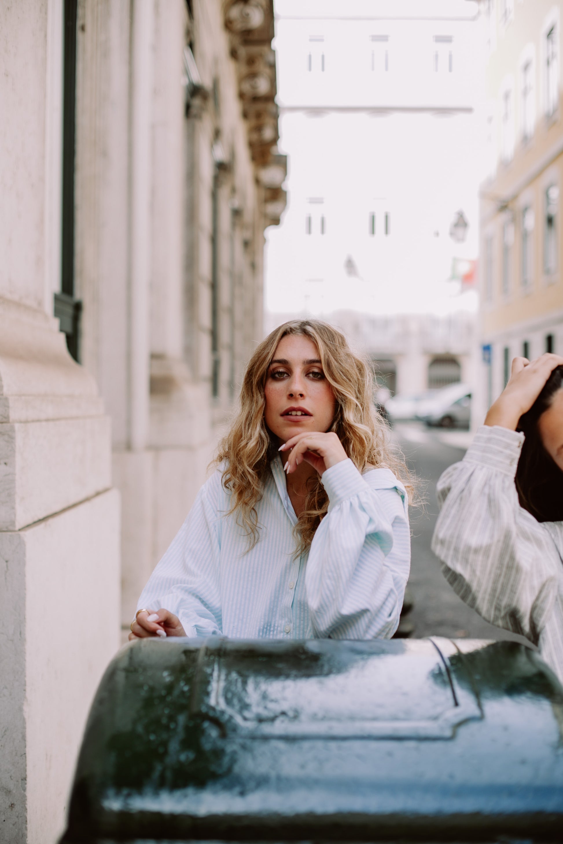 A camisa Filomena tem umas mangas abauladas, para criar drama e marcar a diferença com punhos e dois botões.