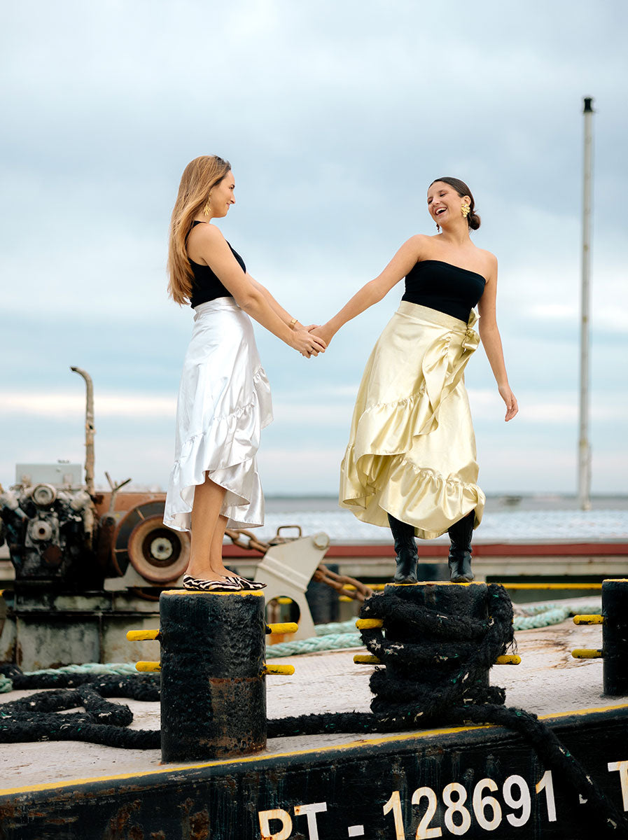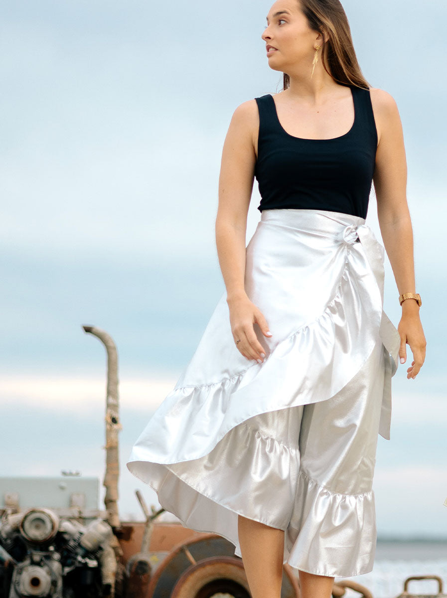 Uma das mais versáteis peças Mu Collection, a SAIA DA MU transforma-se também em vestido, com 5 posições distintas na forma de vestir.